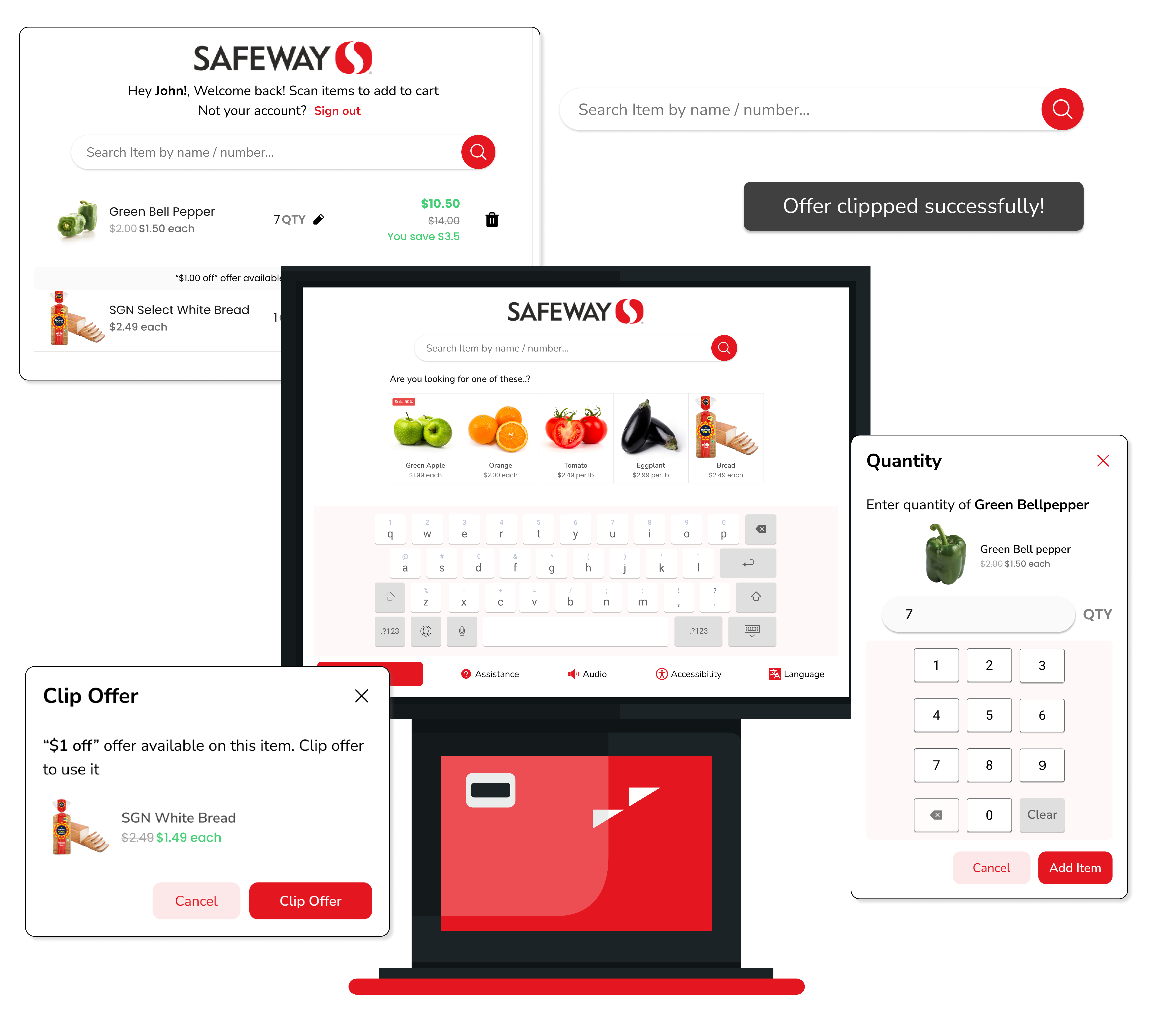 Optimized kiosk usability with multimodal inputs, reducing average checkout time and improving overall store flow.