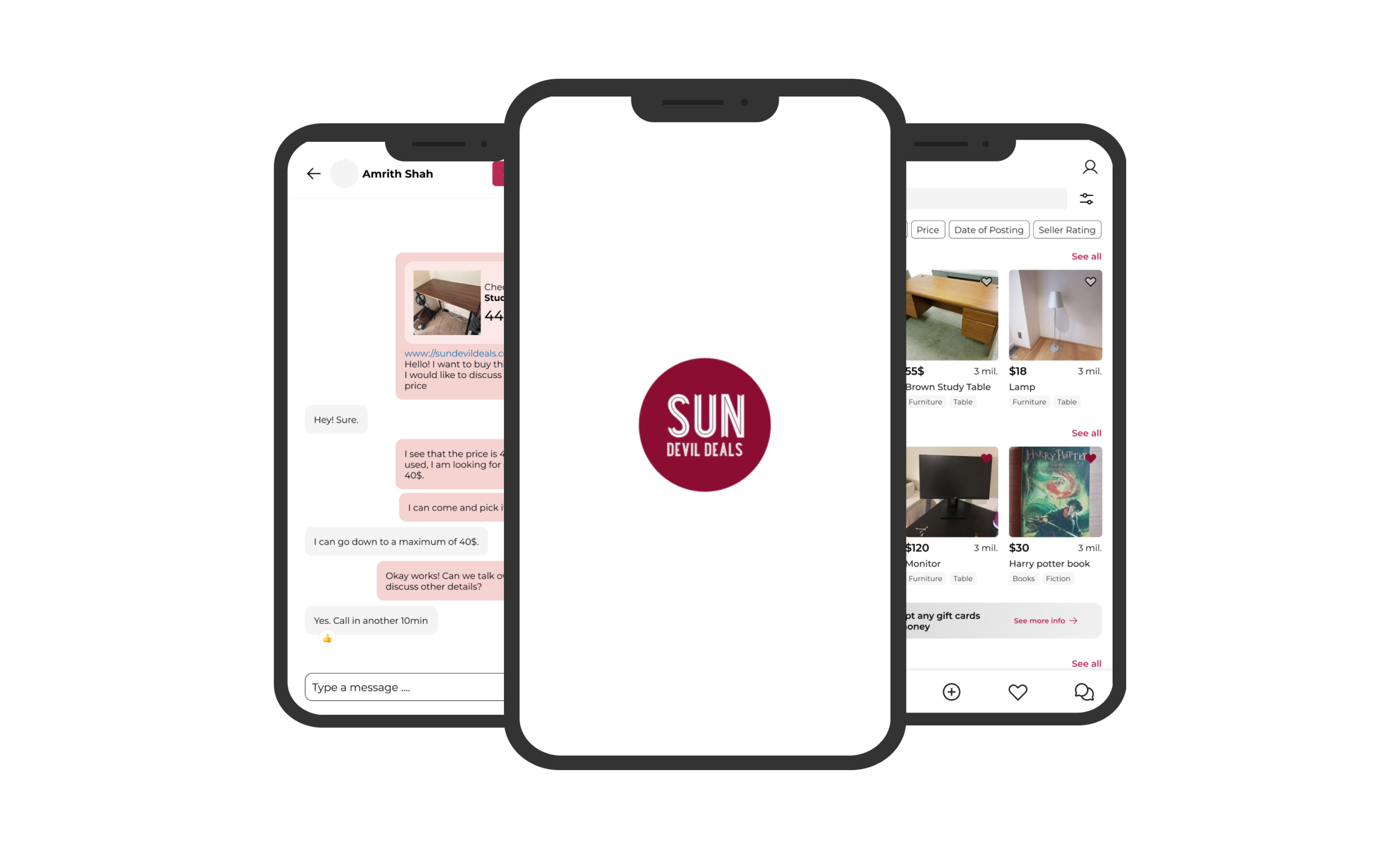 Designed a mobile platform that makes it easier for ASU students to buy and sell second-hand products, improving discovery and trust within the campus community.